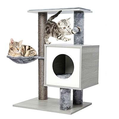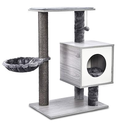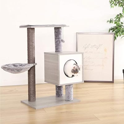 SYANDLVY Cat Tree Cat Tower 115 cm Multi-Level Cat Scratching Posts with Condo Hammock for Kittens and Adult Cats Light Grey PAT05G 10 out of 5 stars.