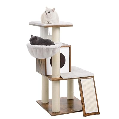 The designs are unique and many can be customized to fit the needs of your particular cat. Like most of the other cat trees on our list this one features sisal rope which promotes healthy scratching and hopefully keeps your kitties from scratching the sofa instead. To make the cat tree even more appealing set it up so it has a view.