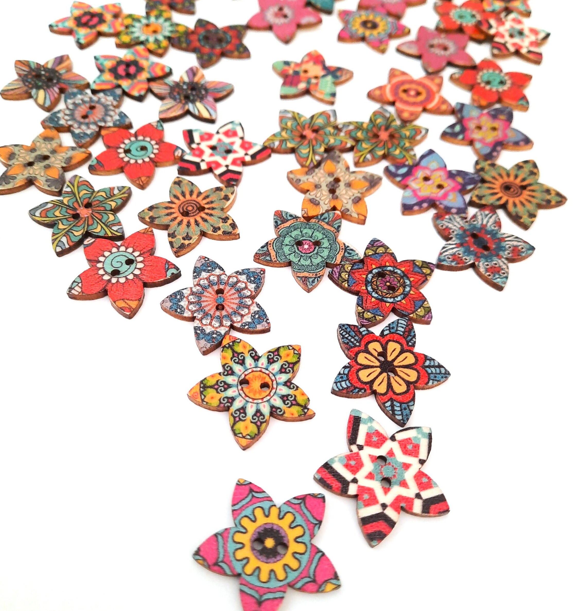 8 Pack 1 Inch Boho Flower Vintage Look Buttons Decorative Etsy